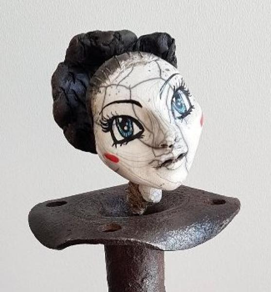 Technique employée : Modelage de l’argile en Raku (choc thermique de températures provoquant des craquelures puis enfumage), soudure à l’arc, découpage plasma des pièces en métal, mélange de matériaux de récupération