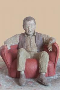 | 01 : Gerard dans le fauteuil sculpture terre cuite |